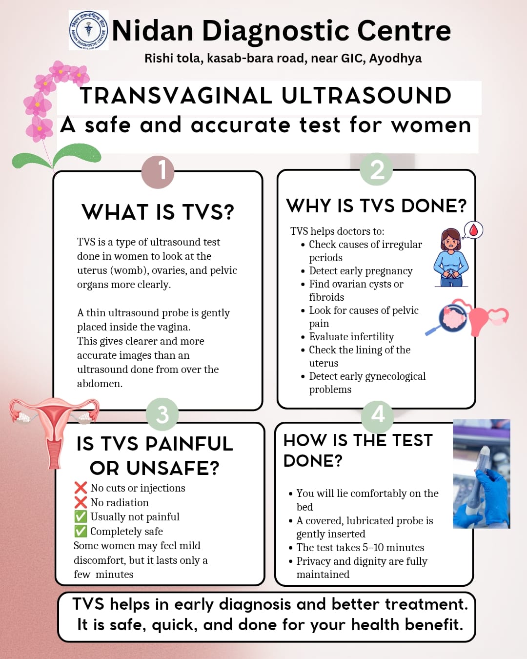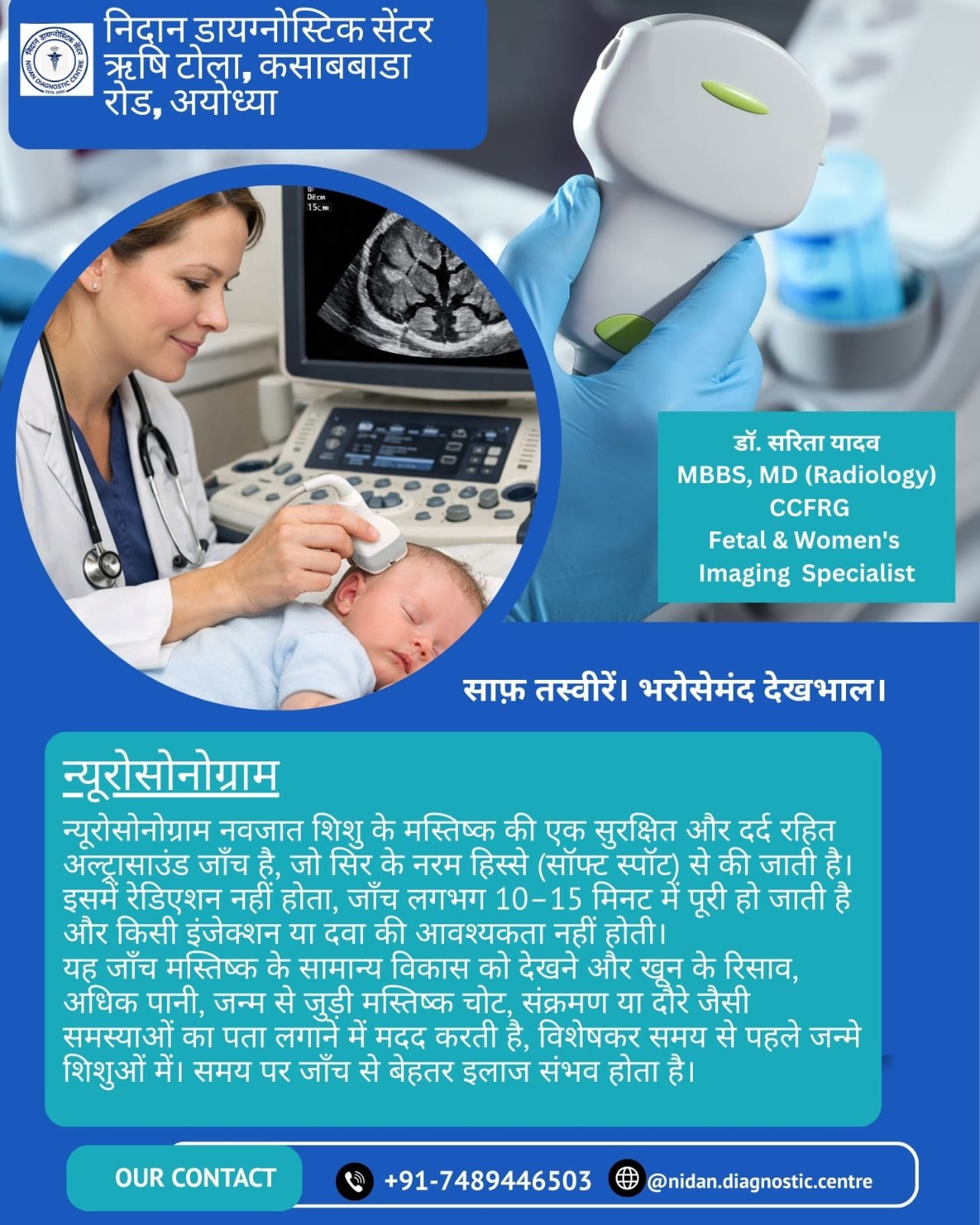 At Nidan Diagnostic Centre, our mission is to provide reliable diagnostic services with accuracy, compassion, and modern technology. We offer a wide range of ultrasound, Doppler, and pathology tests to help doctors diagnose health conditions early and guide the right treatment.